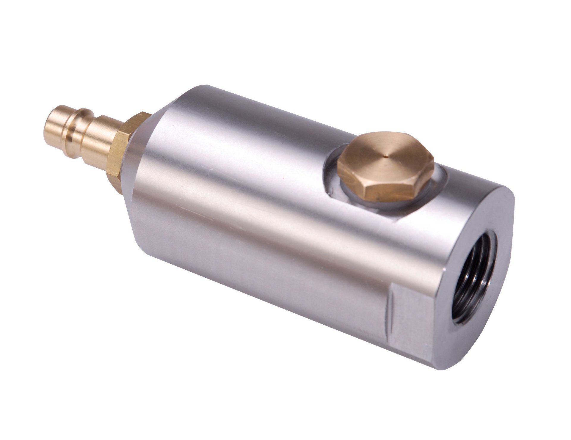 Komůrka s rychlospojkou, nerezová ocel (tělo), mosaz (spojka), 1 lt./min @ 8 bar