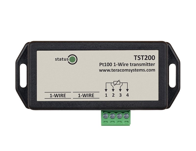 TST200 umožňuje připojení standardních Pt100 odporových teplotních čidel (RTD) k řídicím jednotkám Teracom prostřednictvím 1-Wire rozhraní. Převodník obsahuje 24bitový A/D převodník a pokročilé digitální zpracování signálu, které zajišťuje vysokou přesnost a stabilitu měření bez driftu.
